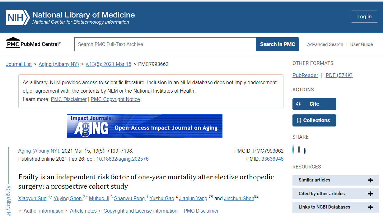 麻醉学分会副会长杨建军:衰弱是择期骨科手术患者术后一年死亡的独立危险因素:一项前瞻性队列研究