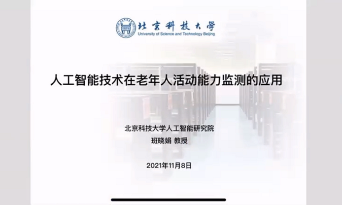 来自北京科技大学的班晓娟教授以前沿科技的角度,向大家介绍了人工智能技术在老年人活动能力监测的相关应用场景,她表示,随着人工智能的不断进步,未来为临床、康复等领域将有更广泛的应用。