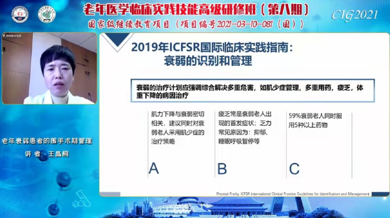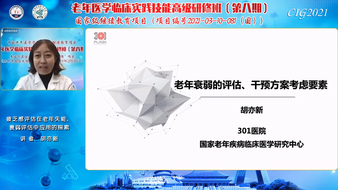 2021年11月8日,由中国老年医学学会和国家老年疾病临床医学研究中心(解放军总医院)联合主办,由中国老年医学学会国际交流工作委员会和解放军总医院第二医学中心联合承办的第八期《老年医学临床实践技能高级研修班》暨国家卫健委“老年失能预防干预”《老年衰弱后失能的预防和干预》(2019gjwjw7)项目培训班第二天的课程,精彩继续。