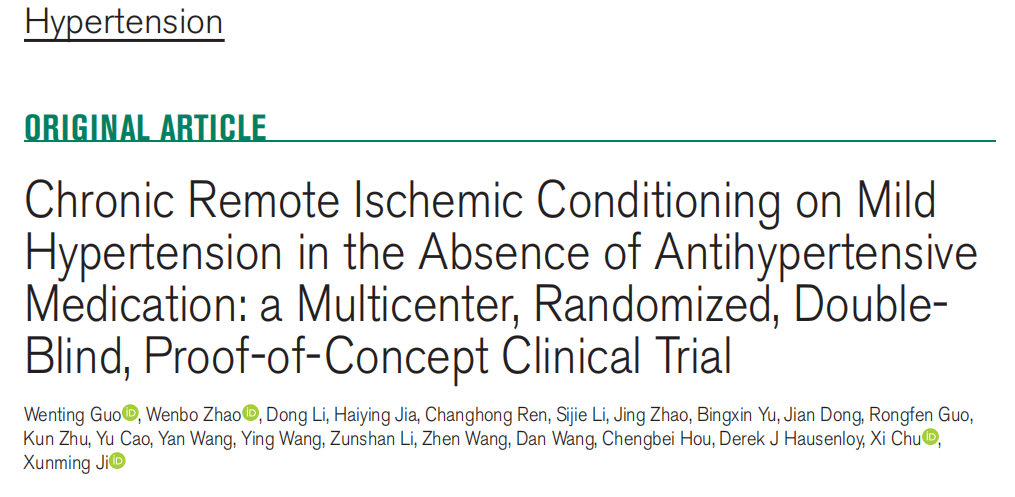 chronic remote ischemic conditioning on mild hypertension in the absence of antihypertensive medication: a multicenter, randomized, double-blind, proof-of-concept clinical trial