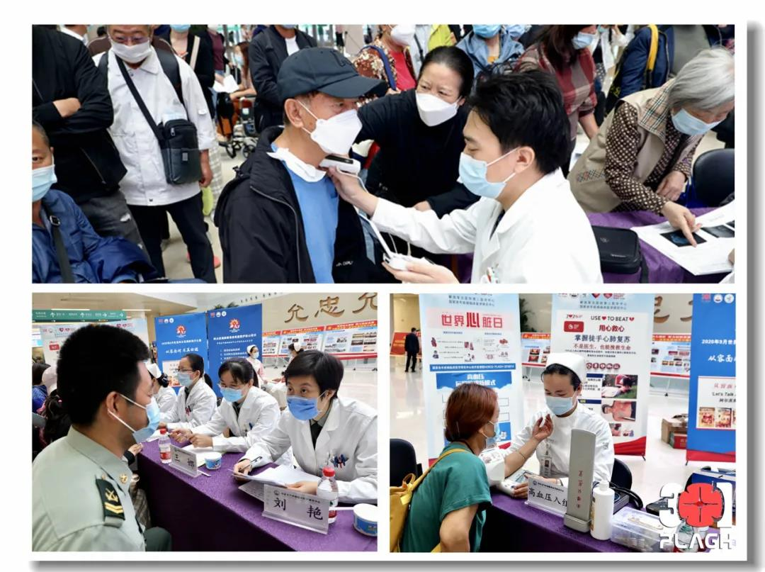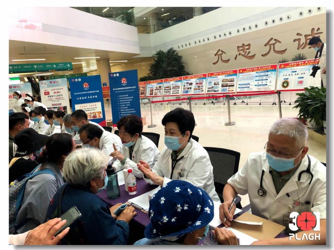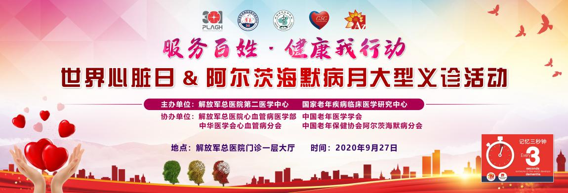 秋风送爽,丹桂飘香。在喜迎“国庆”“中秋”佳节之际迎来第21个世界心脏日,又恰逢第9个世界阿尔茨海默病月,为贯彻实施“健康中国2030”规划纲要,充分履行中国老年医学学会和国家临床医学研究中心的社会公益职能,体现军民融合彰显人民军医心系群众深厚情怀,呼吁更多老年人群关注心脑血管健康和阿尔茨海默病。由解放军总医院第二医学中心(以下简称“第二医学中心”)和国家老年疾病临床医学研究中心(以下简称“研究中心”)联合主办,中国老年医学学会协办的“服务百姓·健康我行动”世界心脏日&阿尔茨海默病月大型义诊活动于9月27日上午在解放军总医院门诊楼一层大厅举行。