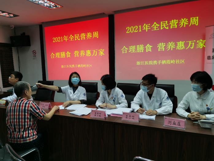 郑培奋主任率领营养科、消化科专家团队赴西湖区栖霞岭社区举行营养健康讲座《老年人如何养胃》及营养义诊活动,现场发放健康科普宣传资料50余份。此次义诊不但向社区老人宣传普及营养学的相关知识,还为他们测量人体成分和制定个性化的营养方案,同时邀请中医科和消化科医师针对不同体质人群拟定了增强免疫力的药膳食谱和中药茶饮配方,深受广大社区老人的欢迎和好评。