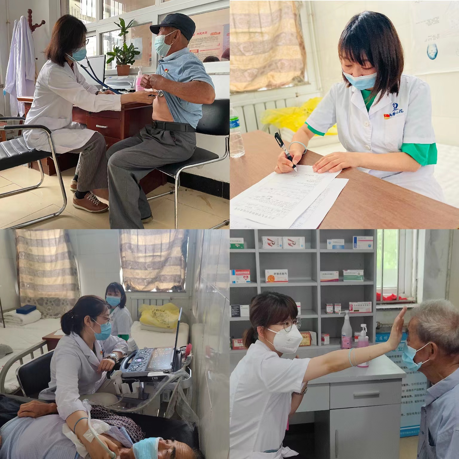 17日上午,“送医下乡解民忧,乡村振兴提质量”义诊活动正式在大营镇新房村委员会一楼卫生所拉开帷幕,大医二院健康管理中心医务人员为包括老党员、孤寡老人、五保户及村80岁以上老人在内的80余名村民,免费进行了超声(甲状腺及肝胆胰脾肾超声)、眼科、内科、外科四大类11小项的健康检查。本次体检共筛查出疑似甲状腺癌3例、肝硬化1例、心衰1例,眼睑疑似恶性肿物2例,重度肾积水1例,高血糖及高血压若干例。同时,健康管理中心医务人员还现场解答了新房村其他村民关于健康管理、疾病预防等方面的问题,并提出了治疗意见。医务人员精湛的医术、耐心细致的解答和不辞辛苦为民服务的精神,得到了广大村民的高度赞扬。老人们纷纷表示,感谢党和政府将名医请到了我们面前,不仅为我们免费进行了健康检查,还让我们足不出村就享受到了大医院的医疗资源。