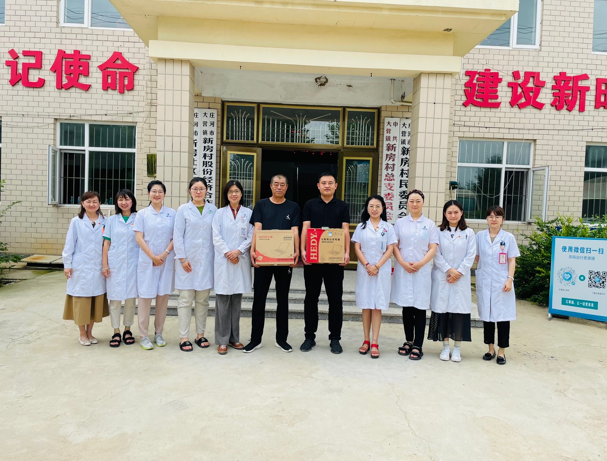 此次活动,健康管理中心党支部代表中国老年医学学会健康管理分会赠送新房村两台笔记本电脑用于日后的健康监测及随访,利用这些设备也可以通过远程管理系统对村民输送健康科普知识及对村医开展培训。新房村书记及乡亲们在义诊活动结束后将锦旗赠与大连医科大学健康管理中心党支部及中国老年医学学会健康管理分会,再次由衷的感谢此次义诊的医务人员。最后,冷松主任表示,不忘初心,服务人民,是中国老年医学学会健康管理分会的责任与担当,致力于用精湛的技术、热情的服务为偏远地区提供高质量健康管理服务,为健康中国贡献力量。