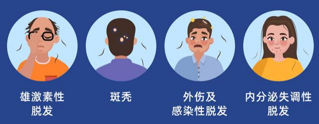 脱发有很多种类型,比如脂溢性脱发、斑秃、内分泌失调引发的脱发等等。为了守护好我们的头顶,我们需要弄清疾病起因,对症下药。