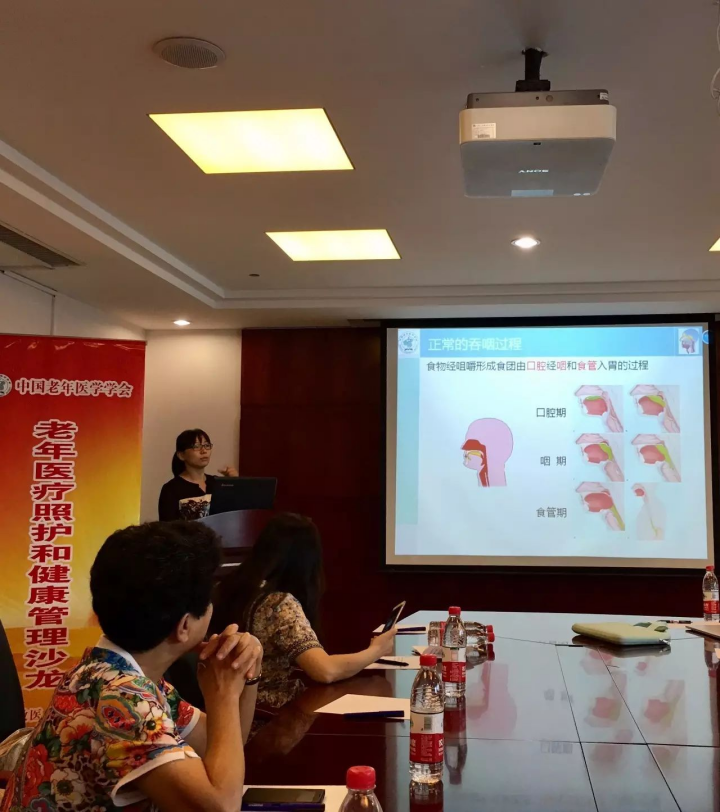 会议伊始,中国老年医学学会常务理事、对外国际交流中心主任、中国老年医学学会高血压分会总干事、解放军总医院保健科副主任医师胡亦新教授带领与会者回顾了首次沙龙的精彩内容,并就实际案例与大家探讨了相关内容:老年患者携带鼻饲管出院后进行居家照护,出现危急生命情况时,老人身边的照护者应如何及时施救?如何保证老人自身正常的吞咽,防止功能退化和避免误吸?