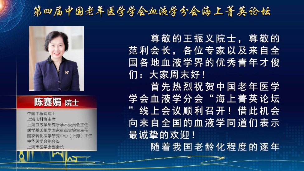 中国老年医学学会范利会长和中国工程院院士、国家转化医学研究中心(上海)主任陈赛娟院士致欢迎辞。