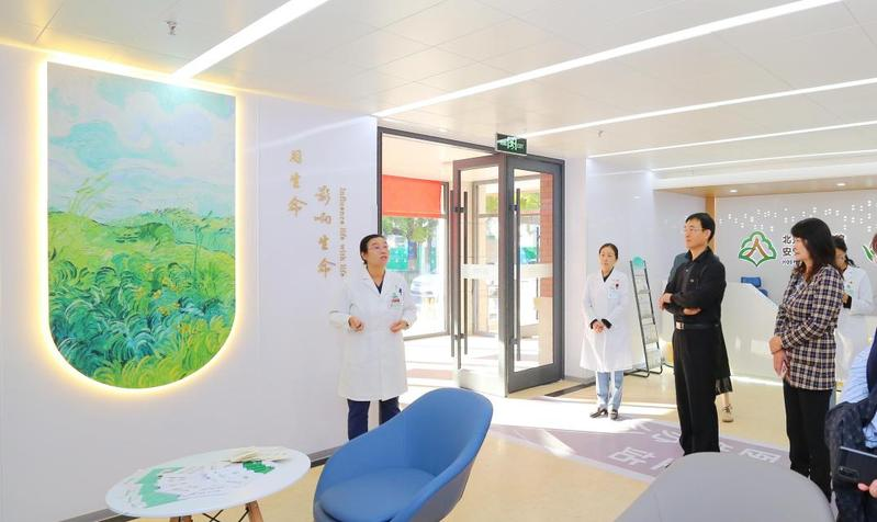 在安宁疗护中心,记者看到从走廊到病房,都体现着尊重生命、护佑生命的浓郁氛围。在活动室,正面墙上是莫奈的一幅油画。曹凤解释说:“莫奈的这幅画,下面是青草地,上面是天空。通过这幅画,我们希望传达尊重生命、崇尚自然的人生理念。我们希望患者都能认识到人都会自然老去、自然离去的生命观,而不是在生命的最后时刻,刻意地去采取一些无谓的医疗救治措施,强行延长生命,让患者在痛苦中离开这个世界。”