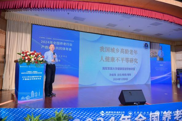 中国老年医学学会健康管理分会副会长、海军军医大学健康管理教研室主任孙金海教授发表了“老年健康不平等研究”的主旨发言。他深入剖析了老年健康不平等的现状、原因和后果,并提出了缓解和消除健康不平等的政策建议。