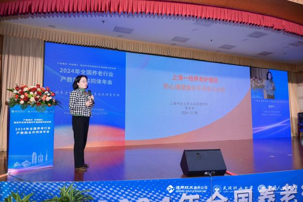 中国老年医学学会健康管理分会常务委员、上海开放大学公共管理学院陈翠华副教授带来了“一线养老护理员心理健康状况调查分析”的主旨发言。她分享了对一线养老护理员心理健康状况的调查结果和分析,并提出了改善其心理健康状况的建议和措施。