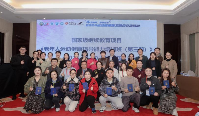 2024年11月23日—24日,国家级继续教育项目“老年人运动健康指导能力培训班(第三期)”在浙江省杭州市举行。本次培训由中国老年医学学会指导,中国老年医学学会运动健康分会、杭州市体育局主办,中国老年医学学会国际交流工作委员会、浙江大学医学院附属第一医院、杭州市陈经纶体育学校承办,国家老年疾病临床医学研究中心(四川大学华西医院)、《中国临床保健杂志》社联合协办。培训形式分为线上、线下,线下共67名来自医院和基层医疗机构以及体育、康复工作方面的代表参加了为期两天的培训,线上人数共1695人;本次培训班共有来自全国20余位老年医学、全科医学、康复、体育等领域知名专家学者以推动老龄健康事业高质量发展为目标,聚焦老年人运动健康管理领域的理论深化与实践创新。从科学设计课程内容到全流程实施培训,全面提升了参训人员在老年健康指导、疾病预防及康复管理方面的专业能力,为新时代健康老龄化工作奠定了坚实基础。分享了老年医学与运动康复领域最新研究成果,深入探讨运动与老年医学相结合的技术方法,提出老年医学和健康服务以及专业人才培训行业发展的前景与方向,为国家制定相关政策提供了依据。