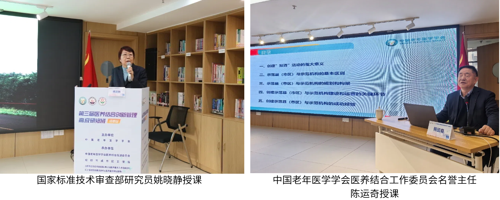 中国老年医学学会医养结合促进委员会会长杨庭树致辞强调,医养结合是应对人口老龄化的国家战略核心,本次研修班聚焦医养结合的政策解读、服务规范、质量控制等核心议题,邀请众多权威专家通过系统化理论和实战经验分享,共同探讨医养结合的政策趋势、服务标准、全流程管理等关键问题,作为中国老年医学学会理事单位、本次培训班的承办单位,成华区中医医院以“医中有养、养中有医”的服务格局,在标准化、信息化、智能化领域树立了“成华样本”,为行业提供可复制的实践经验。相信通过本次深度交流,将带给与会代表新的启发。