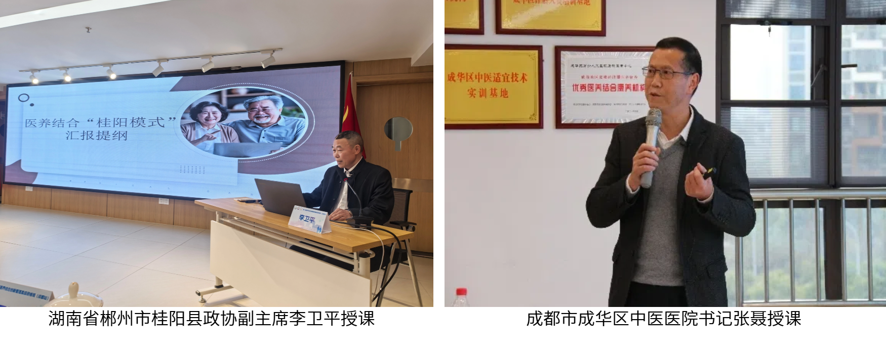 本次研修班以“创新管理”为核心主题,特邀国务院发展研究中心专家,中国老年医学学会医养结合促进委员会会长杨庭树,国家标准技术审查部研究员姚晓静,中国老年医学学会医养结合工作委员会名誉主任陈运奇,湖南省郴州市桂阳县政协副主席李卫平,成都市成华区中医医院书记、康穗养老中心主任副教授张聂,河南省卫健委医养结合质控中心办公室、郑州大学第五附属医院医养结合办公室主任汪桂琴,成都中医药大学管理学院、健康四川研究院-健康产业与医疗保障研究所所长副教授彭美华,上海市安宁疗护服务管理中心专家组长施永兴等专家分别从《医养结合:政策展开及国内外实践》《医养结合机构医疗衔接服务规范》《服务标准助力医养》《医养结合与医养融合》《创建“全国医养结合示范县(市区)、机构”的整体设计和实施办法》《医养结合“桂阳模式”汇报交流》《医养结合机构全流程规范管理》《医养结合人才队伍与管理体系构建》《医养结合服务质量管理与安全控制》《长护险赋能医养结合,构建老年照护新生态》《安宁疗护在医养结合机构中的服务流程标准化与实施路径》等前沿议题,为参会学员带来精彩的分享。成华市成华区中医医院副院长夏晓芹主持。