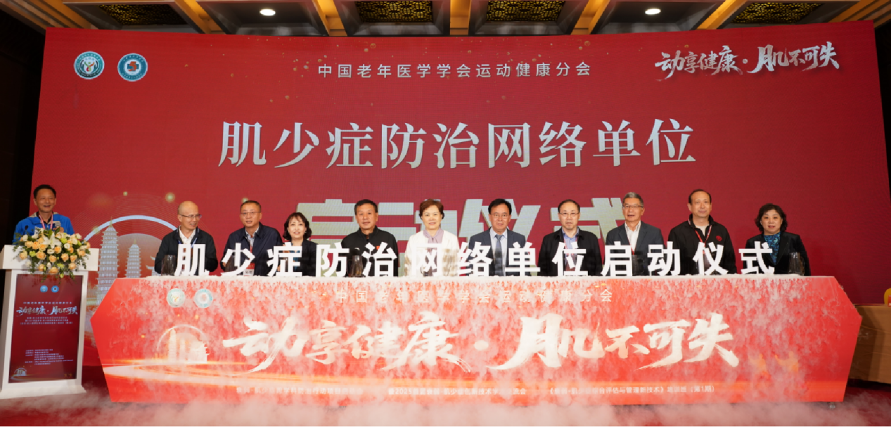 董碧蓉、刘学军、苏亚君、许家仁、吴缨、胡亦新、暴继敏、刘毅俊、倪国新、段光琳、黄国志并肩出席“肌少症防治网络单位启动仪式”,和与会代表共同见证了这一历史时刻。