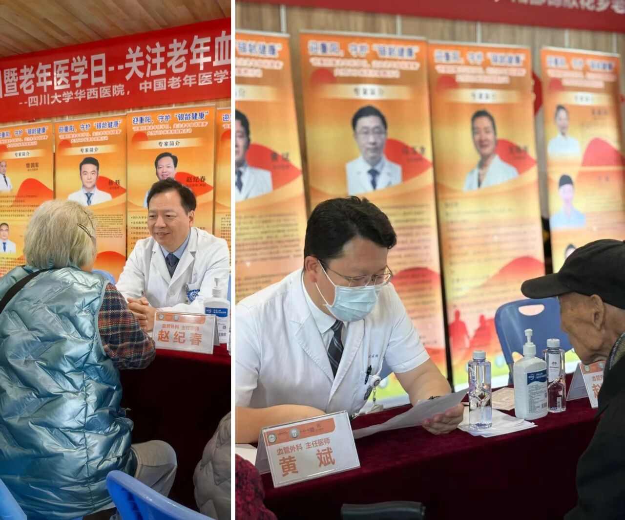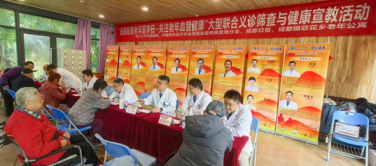 10月26日上午,四川大学华西医院血管外科、超声影像科及门诊部联合成都日报锦观新闻在成都锦欣花乡老年公寓开展“迎重阳暨老年医学日——关注老年血管健康”大型义诊筛查与健康宣教活动。