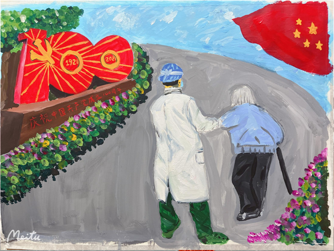 dr. he yuxiao used delicate strokes to describe the care of anesthesia professionals for the elderly in the 100th anniversary of the founding of the party.