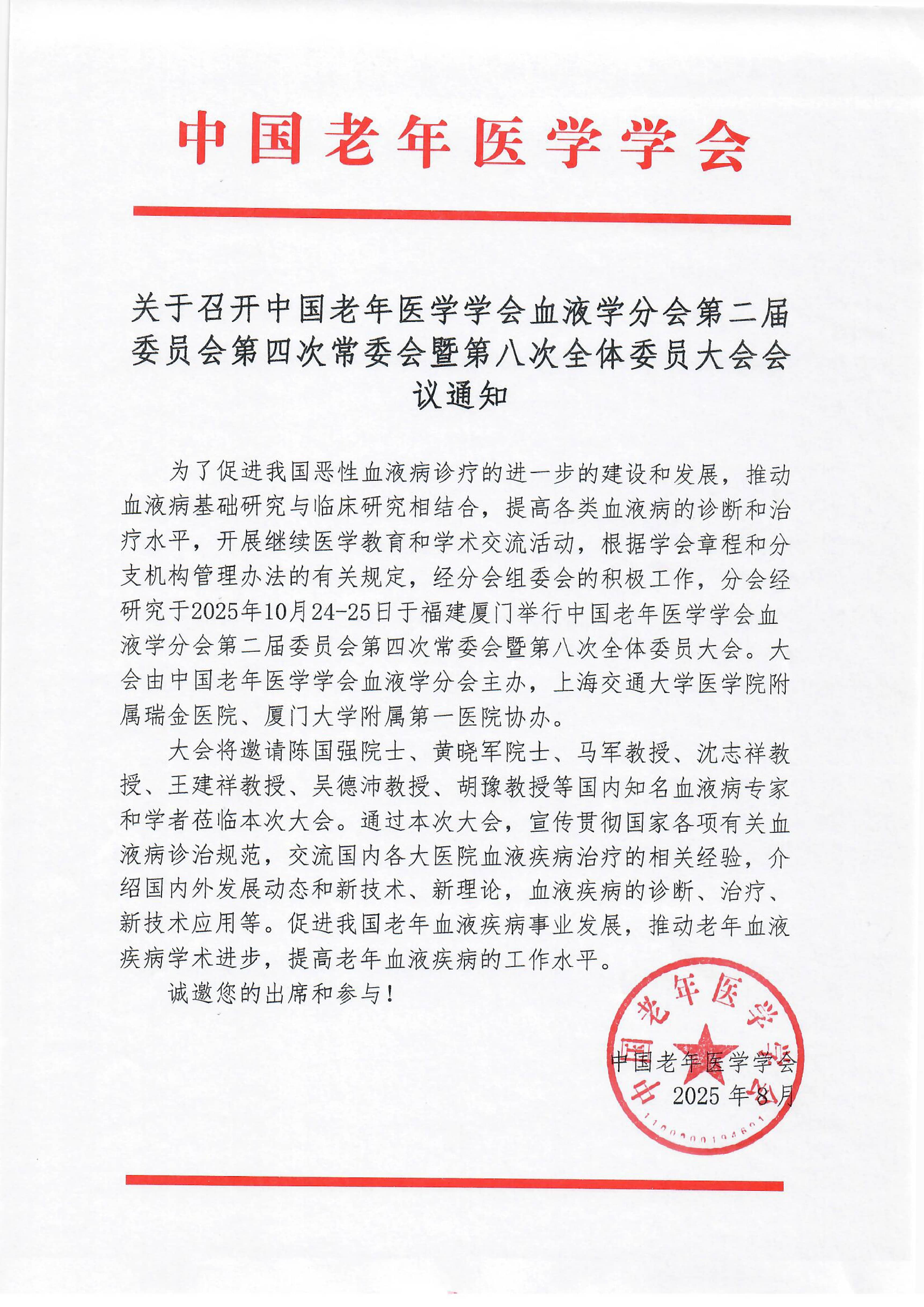 【 meeting notice 】 the fourth standing committee meeting and the eighth plenary session of the second committee of the hematology branch of the chinese geriatrics society are about to be held