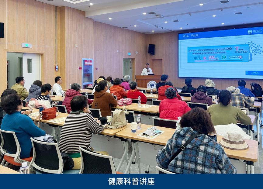 during the popular science lecture session, professor ke hui, a member of the public health service branch, and professor zhao guangzhou from huasheng rehabilitation hospital respectively delivered popular science explanations on the themes of "give the heart a 'maintenance manual'" and "early identification, early treatment, and early prevention of stroke". the two professors popularized knowledge about the prevention, management and rehabilitation care of cardiovascular and cerebrovascular diseases among the elderly through a combination of pictures and text and in simple and understandable language, helping the elderly establish a scientific health concept.